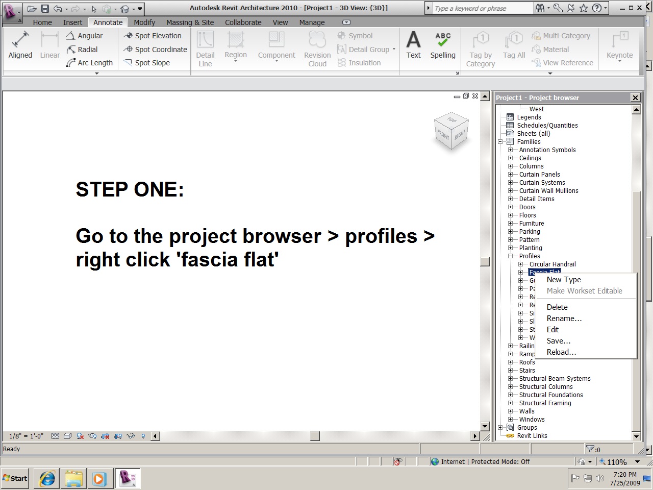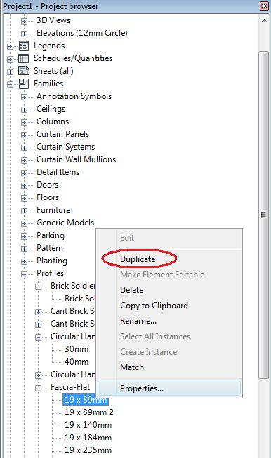 1. Go to the project browser > profiles > right click 'fascia flat'