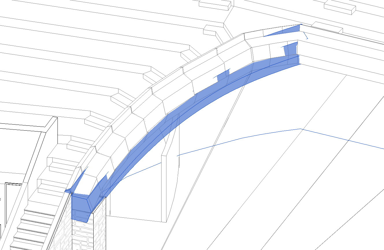 but the highlighted blue arc doesn't follow the true path of the balcony. I could change the segmented swept blend paths