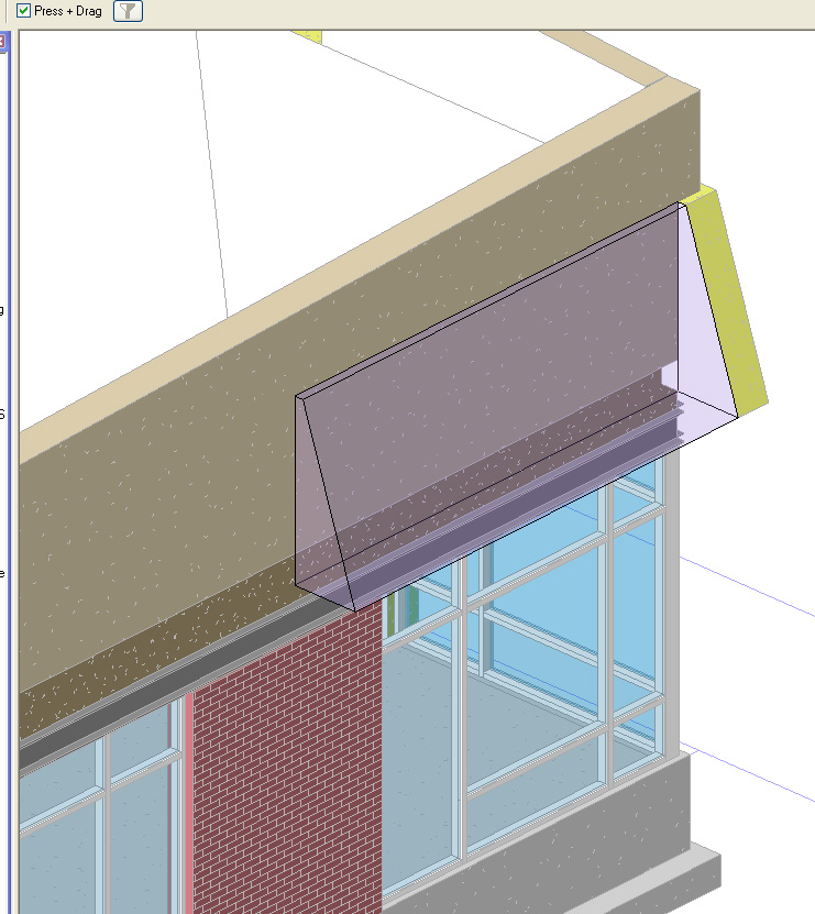 here is a section of that stucco projection. Revit will not allow me to cut geometry from the projection so that the overlapping part is flush with the vertical wall. Any suggestions? Also how would I attach a top and bottom to complete the stucco mass. Thanks!