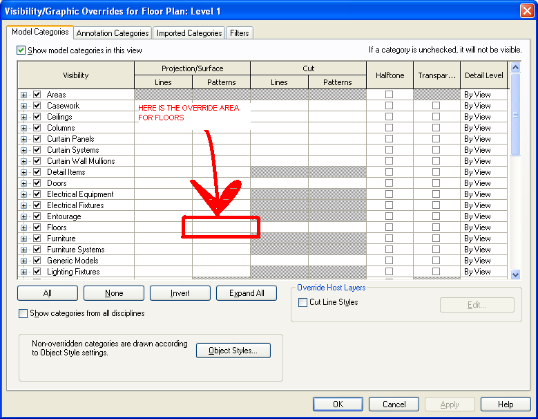 How do you turn off the floor pattern in Revit 2008? It's not listed in the visibility/graphcis over-rides menu any more...
