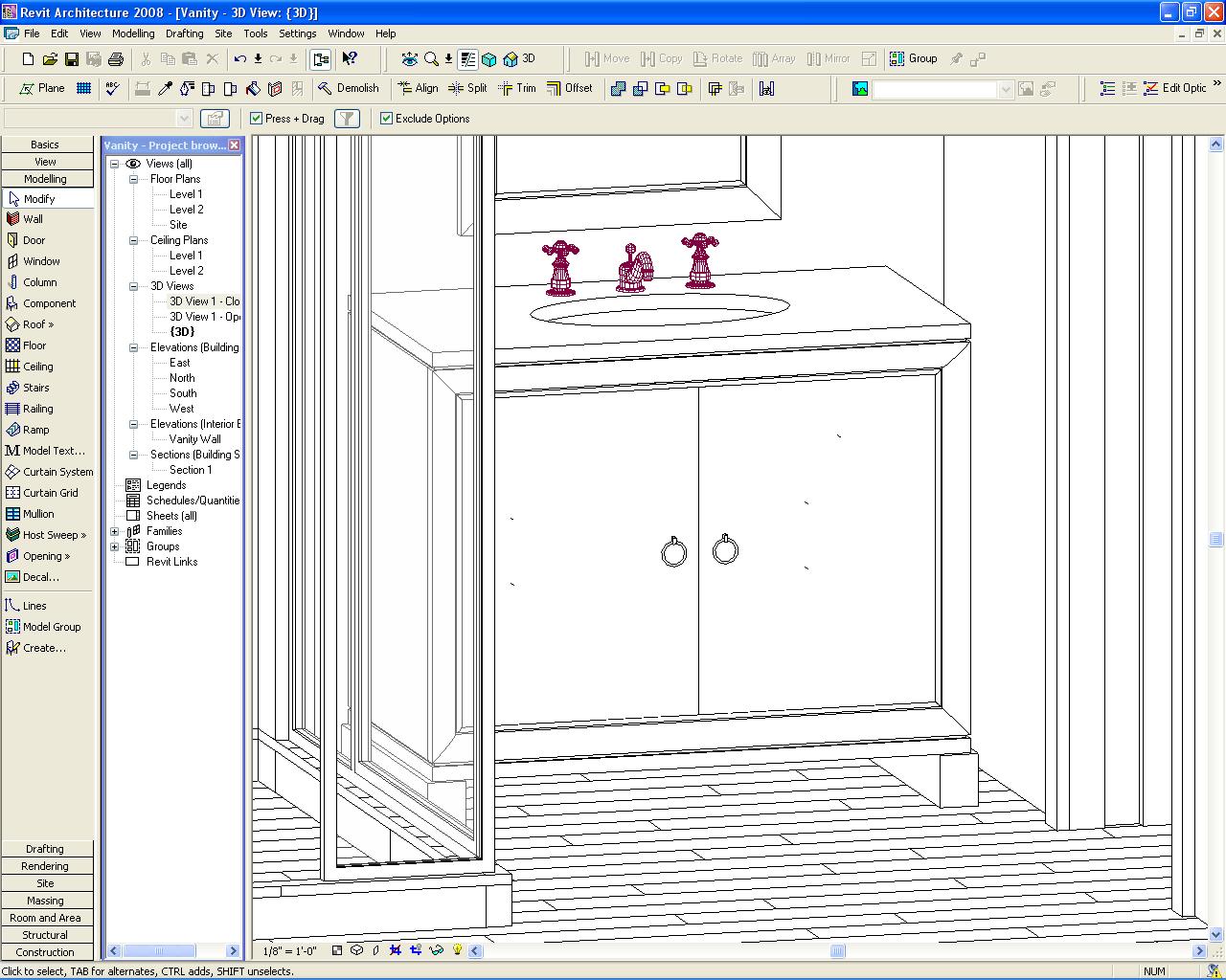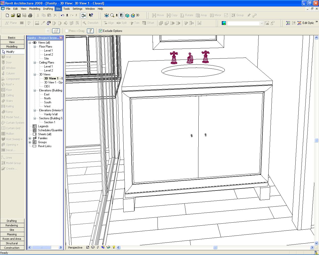 Hey guys. I'm attaching a few pictures showing the problem that I'm having. I have a furniture family that I created and placed in a model. The two little rings on the doors of my cabinet are disappearing when placed in a camera view. They show up in all standard views and the normal 3D View, but not in a camera view. All visibility settings are on in that camera view as well. The weird part is that the rings are barely visible in the shaded view. Now I know that they would be easier to see when I get around to changing the materials, but what about the Hidden Line view. Where did they go? Please help.