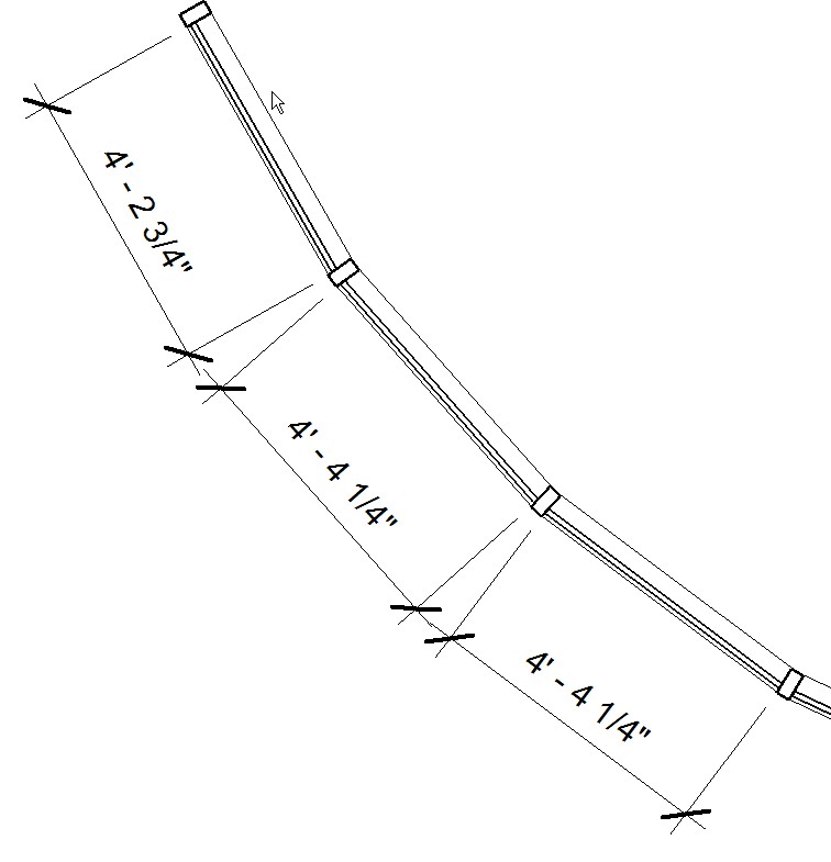 I am assuming you are talking about an angled wall such as a bay area; if so, I have found the easiest "work around" to be using detail lines, from the drafting tab, and then using your linear dimension to complete your task. Refer to the attached image: Step 1-Using the thinnest line setting, draw short line segments along the wall where you are going to dimension. Step 2-Using the Trim/Extend tool, fillet these lines to create an intersection. Step 3-Dimension your wall using a LINEAR dimension. Hope this helps. Jim H.