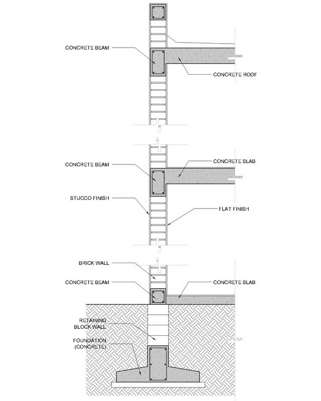 Hi all: I'm new to revit, and my company wants to find out if revit fits to our needs, so I've been playing with the trial version, and I have some questions: In revit, what is the level of detail you are able to work with?, in the main 3d model, not in detail views. I mean, for instance:can you model a brick wall, and then you put on it a finish layer? or you just simply draw the wall with all the finish, insulation, etc. information embedded?. If I have a 14mm brick wall with stucco finish, painted in white color, and then I have the same 14 mm brick wall with stucco finish, but painted in yellow instead, do I have to create a different wall family?, or is there any tool to just change the finish or color without changing its main properties?. And at least, this is the common construction system we use in my country (concrete, structural brick walls, and stucco finishes): [IMG]http://img241.imageshack.us/img241/5142/sm01modelcf5.jpg[/IMG] What would be the best strategy to model a building with this system?, should I model the wall brick to the full height, in order to mantain the same finish in the exterior view?, or should I model the brick wall up to the concrete beam, then add the beam, and then add the concrete slab? If I model this last way, I end up with different finishes in the exterior. Should the concrete roof be attached up to the exterior face of the beam(overlapped) or should I model elements without overlappings. This is because I overlapped concrete elements, but in sections, they appear overlapped, with lines crossing, and I don't like it. Thanks in advance. Best regards Renato