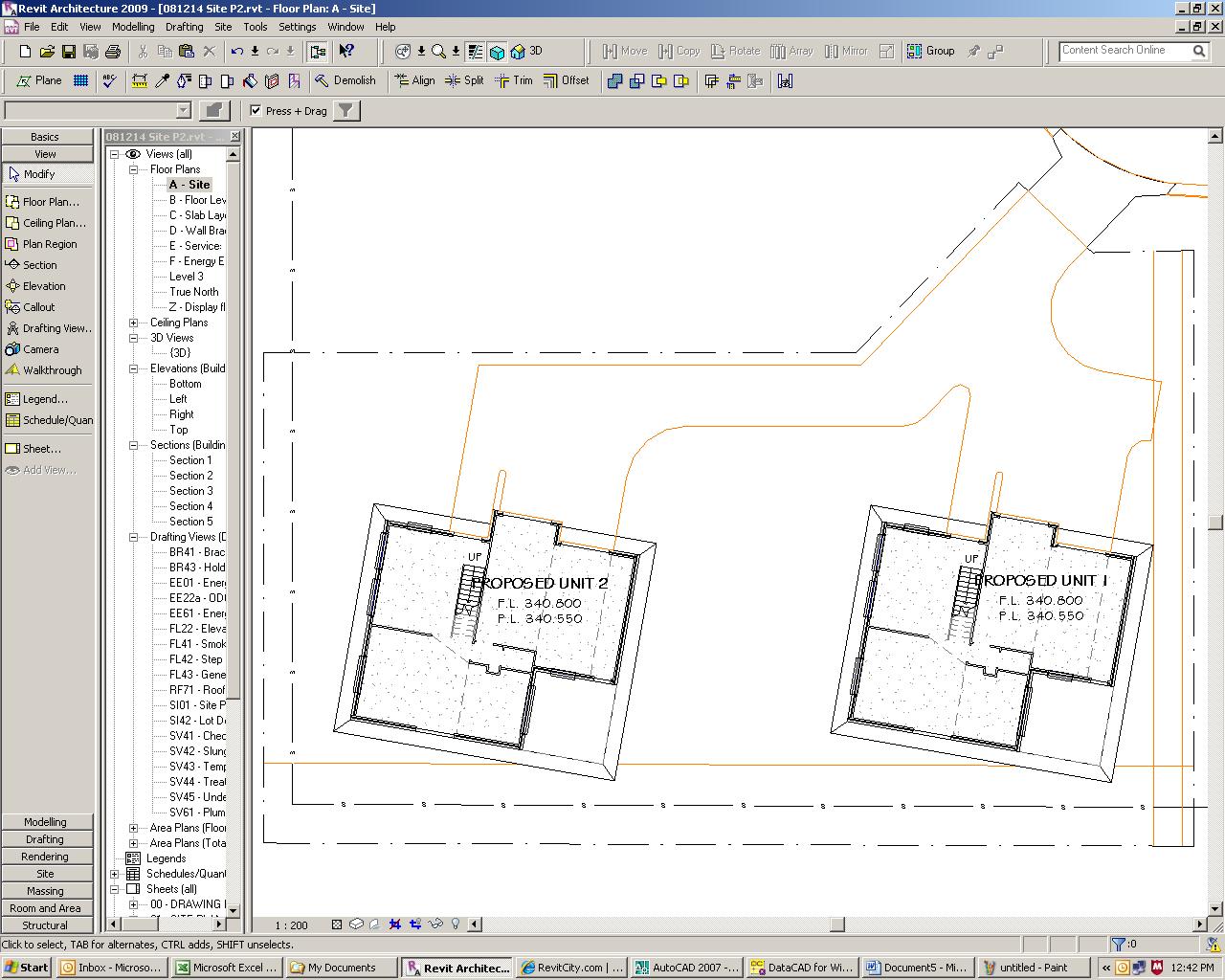 Hi All. New to revit and i'm trying to produce a complicated driveway on a sloping site, also need to have a 100 nib on some parts of the driveway. Note I need alot of fill on the site aswell, to get above flood level, so site will look like the rolling hills when i'm done. See attachment for site layout. What is the best way to do this. Cheers & beers Kat