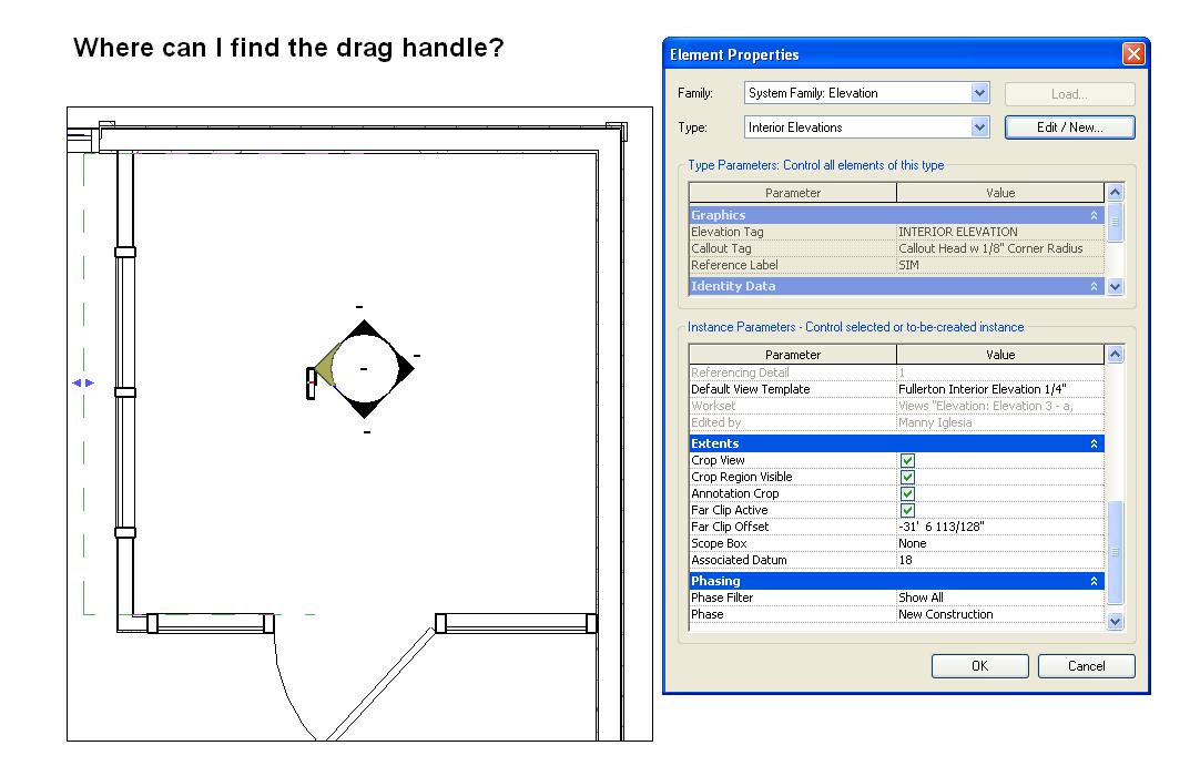 Here's what I mean. In some cases, I can't find those drag handles on plan. If I start a new project, it shows. In the project that I'm now doing, sometimes I see, sometimes I dont.