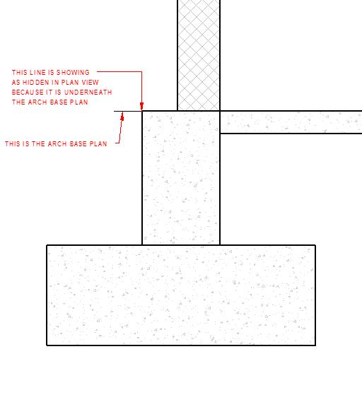 "But I'm having problems with some lines for the strip footings showing as solid lines instead of hidden lines the way they're supposed to. Odd thing is that it doesn't do it everywhere, just in some places. see screen shot below." Are there two line overlapping in those areaa?