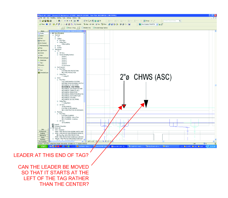 Hey all, This is my first and probably not last post on Revit. So here we go! My company has just started to ventur out into the Revit world and are working quite well in it. As we move along we are beginning to set office Revit standards such as Annotations, texts, tags, etc. so that Revit and AutoCAD produced projects from are office look the same. I have a question in regards to custom tag creations with leaders. The Mechanical group has begun to create custom tags and ran into a question. They created a custom Pipe tag and added a comment parameter so that they could have the tag read the pipe diameter as well as note what type of pipe it is. Right now it seems that the leader defaults to the center of the entire tag. Is there a way to left justify the leader? Is it be a change made within the family or directly in Revit itself. As of now we could not figure out the anser so I thought I would give it a shot here and see what other people may suggest. I bet this might be a simple question to ask but any help would be great! Thanks! I have attached an example of the tag for reference.