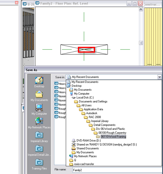 followed instruction for creating profile family in the help menu to the point of saving the profile. Trying to figure out where to save the profile. I created a 2x8 cross section profile and added an x pattern from the detail component family. Does it matter where the profile is saved ?? I made the profile so I can add it to a deck railing that needs a 2x8 top cap. I get to the "Imperial Library" folder. Then: I know I want to save it to the Imperial Library folder. After that I'm stuck. I think I want to save it to a profile folder, but I don't see a railing option in the profiles folder. I also think I want to add it to a "detail component" folder, but in that folder there is only a "nominal cut section" or "rough cut lumber section" folder. Upon trying to save to this location I get the error message shown in the 2nd attach. Is there a specific location to save profiles to? If I plan to use the same profile for railing sections as well as wall sections are there any guidelines to follow when saving the profile? For instance do I need to create two 2x8 profiles? One for the railing section and one for the wall section. Or do I need to save a single profile to a certain folder to ba able to access for both applications?