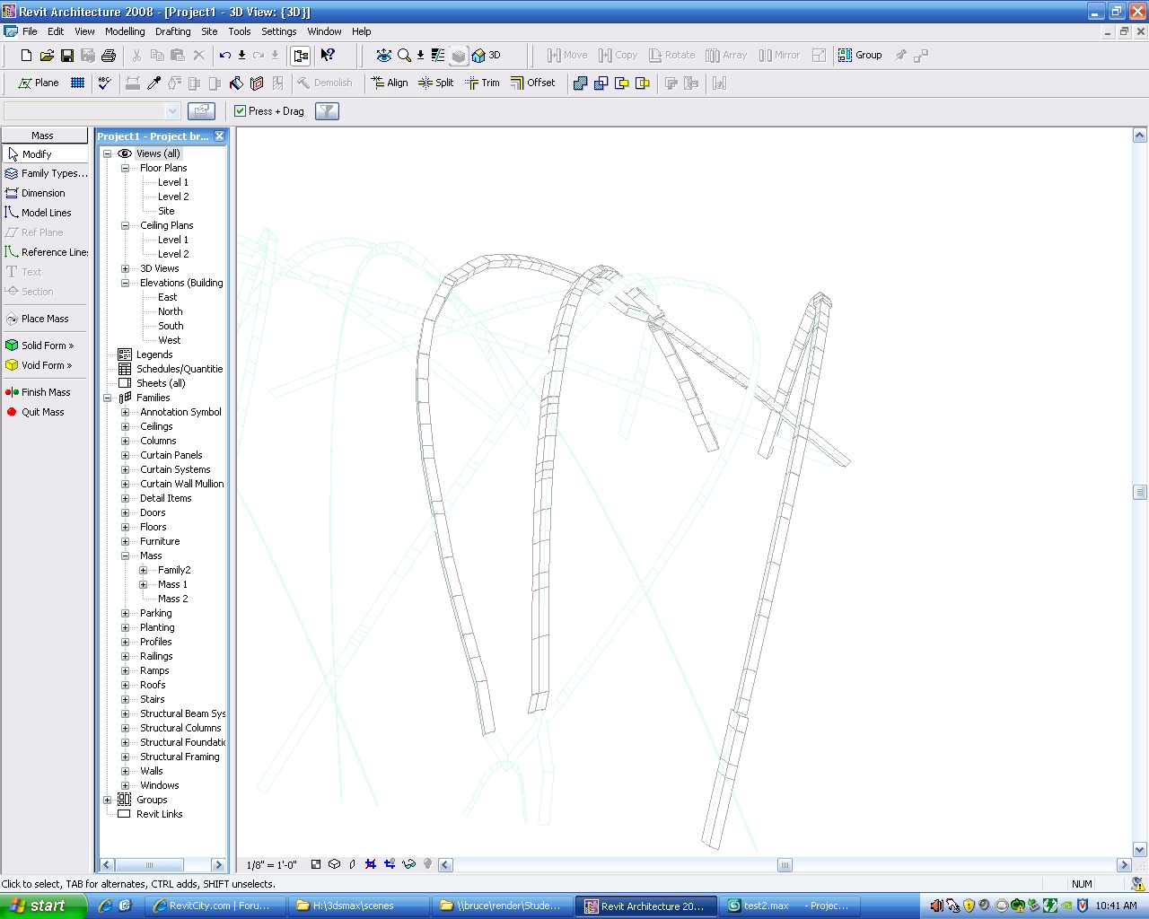 Hey everyone, I have a mest that i can create pretty easily in 3ds max which i can then import using the .dwg format into revit and can of course create a wall from face from the mass. but it always comes through looking segmented and messy. unfortunately there is no way for to create the mass from the modeling tools in revit. so if anyone has any ideas about how to take this 3ds form and put it in as smooth walls in revit i'd love to hear it. I've attached the .dwg file below and some screen shots. thanks.