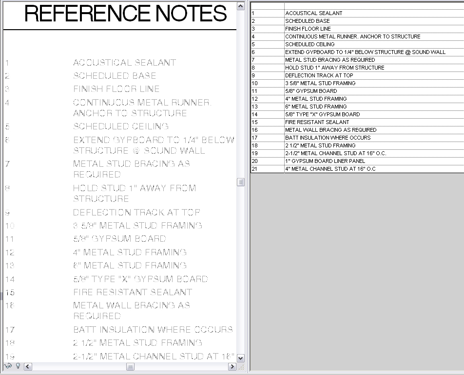 Revit09- I'm wondering if there is any way to make a list of all the keynotes used in the project. I don't want to filter by sheet because, for example, a #8 keynote value will have a different number on the next sheet. Right now i have a series of details; I filled one sheet, however, once I begin to place them on the next sheet the Keynote Legend doesn't display any text after the numbers from the previous sheet. The attachments I've provided show how my Keynote Legend appears before and after I begin a second sheet of details. Before the second sheet it looks fine but after it only shows what is on the second sheet. Any ideas on how to show every value regardless of the of what sheet the detail appears?
