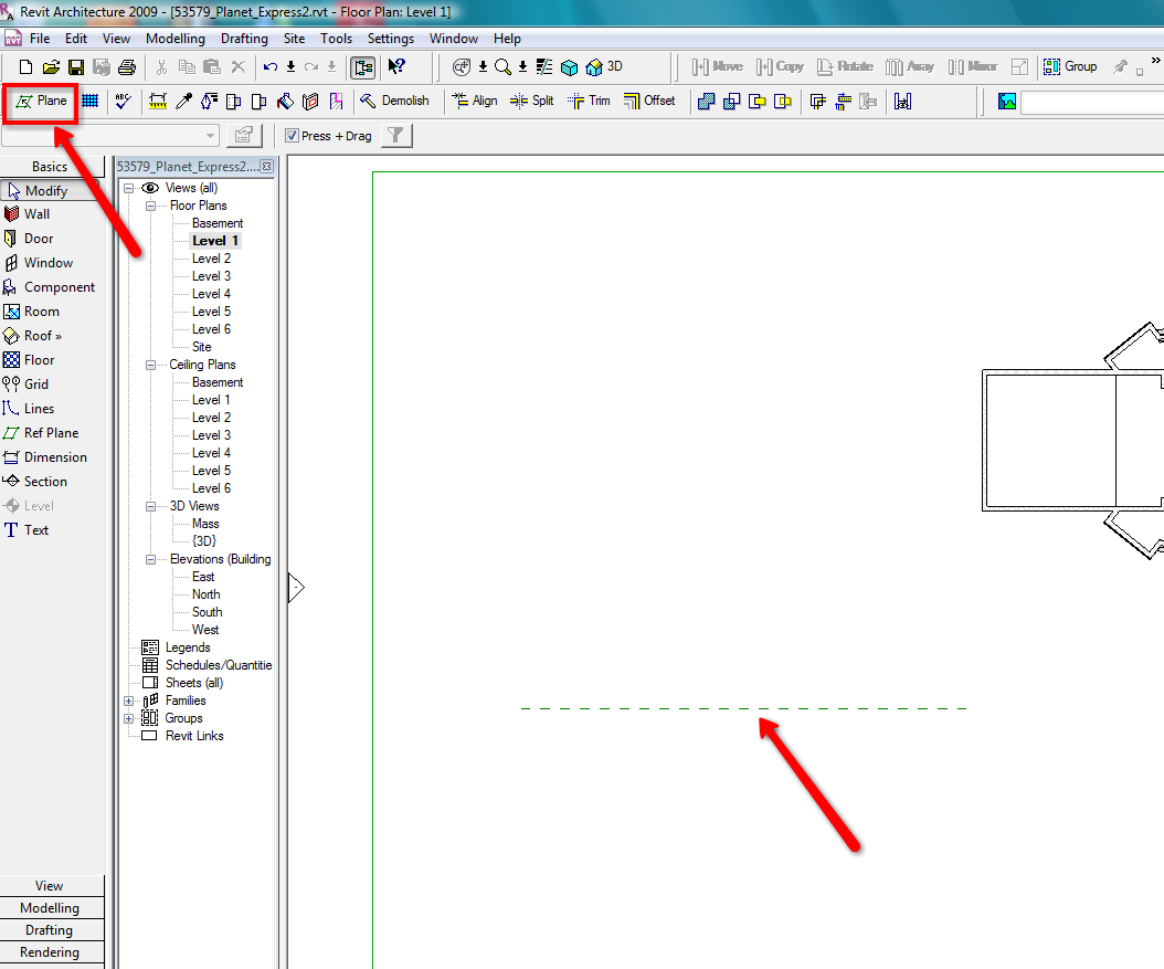In PLAN VIEW create that Ref plane, then do what i told you before....