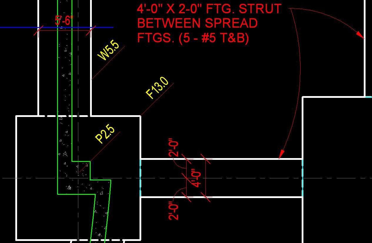Thanks for the input. Yes the materials are the same and the top of footings are the same. When I uncheck structural in the element properties of the foundation slab the continuous line goes away. This seems very odd. It solves the problem but I would like to keep the strut discipline as structural.