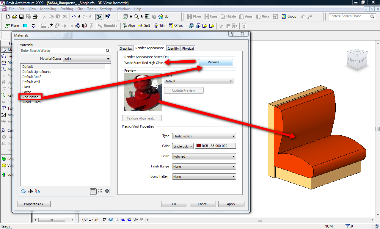 Hi, I am a student in The Art Institute of Las Vegas and I've started a project with Revit. I have found several families in Revit City, some of them I've been able to change the materials and colors and others I haven't. Can anyone help me make changes, for example a single banquet I found, I would like to change the color of the seating, when its being rendered the default color shows up. I've tried editing the family it self but I get stuck when I can't find the same screen when you change the materials in other families. Also, there is a flower vase, when its being rendered the flower is in default color, how could i change the color of the flower? Please Help Thank You!!!!