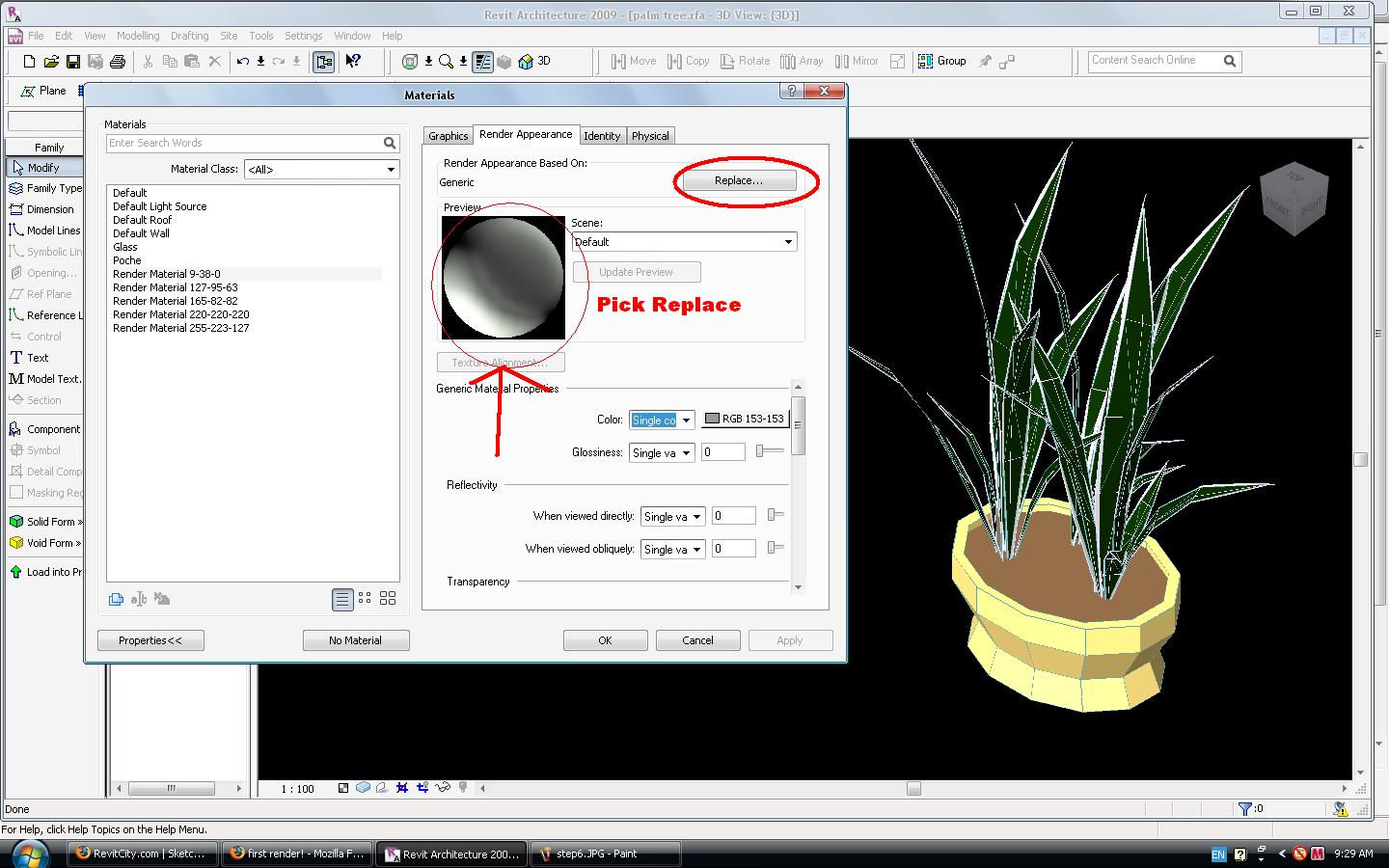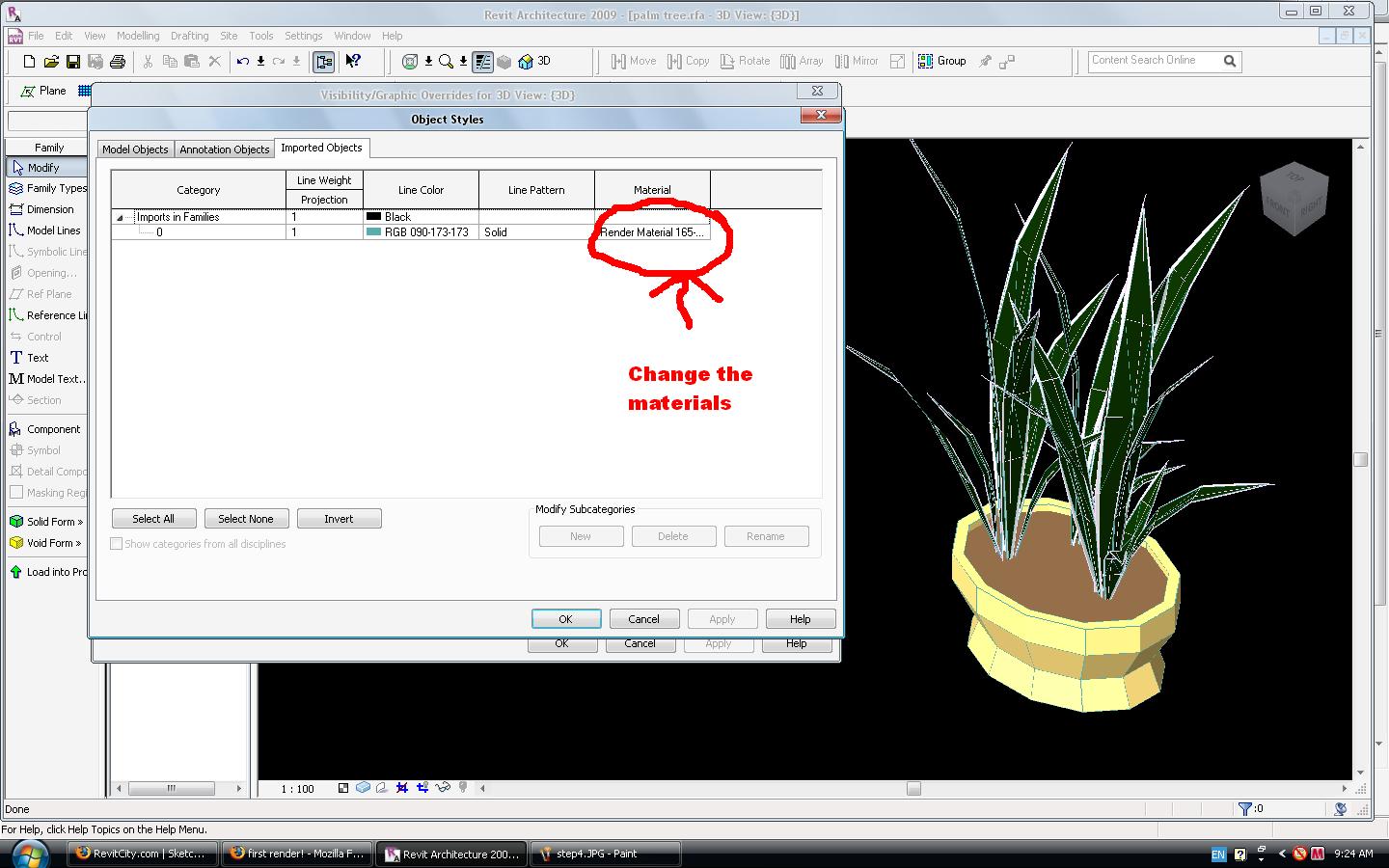 ... ON THE OBJECT STYLES> IMPORTED OBJECTS> MATERIALS IT SEEMS THAT EACH LAYER HAS ALREADY A CORRESPONDNIG MATERIAL APPLIED WHICH IS THE MATERIAL FROM SKETCHUP. I CHANGED THIS MATERIALS AS TYPHOON SUGGESTED INORDER TO CHANGE THE MATERIAL APPLIED TO EACH LAYER WHEN RENDERED. LOAD THE FAMILY TO A PROJECT, RENDER, WHEN ITS DONE THE MATERIAL DONT SHOW UP. ANY INSIGHTS???