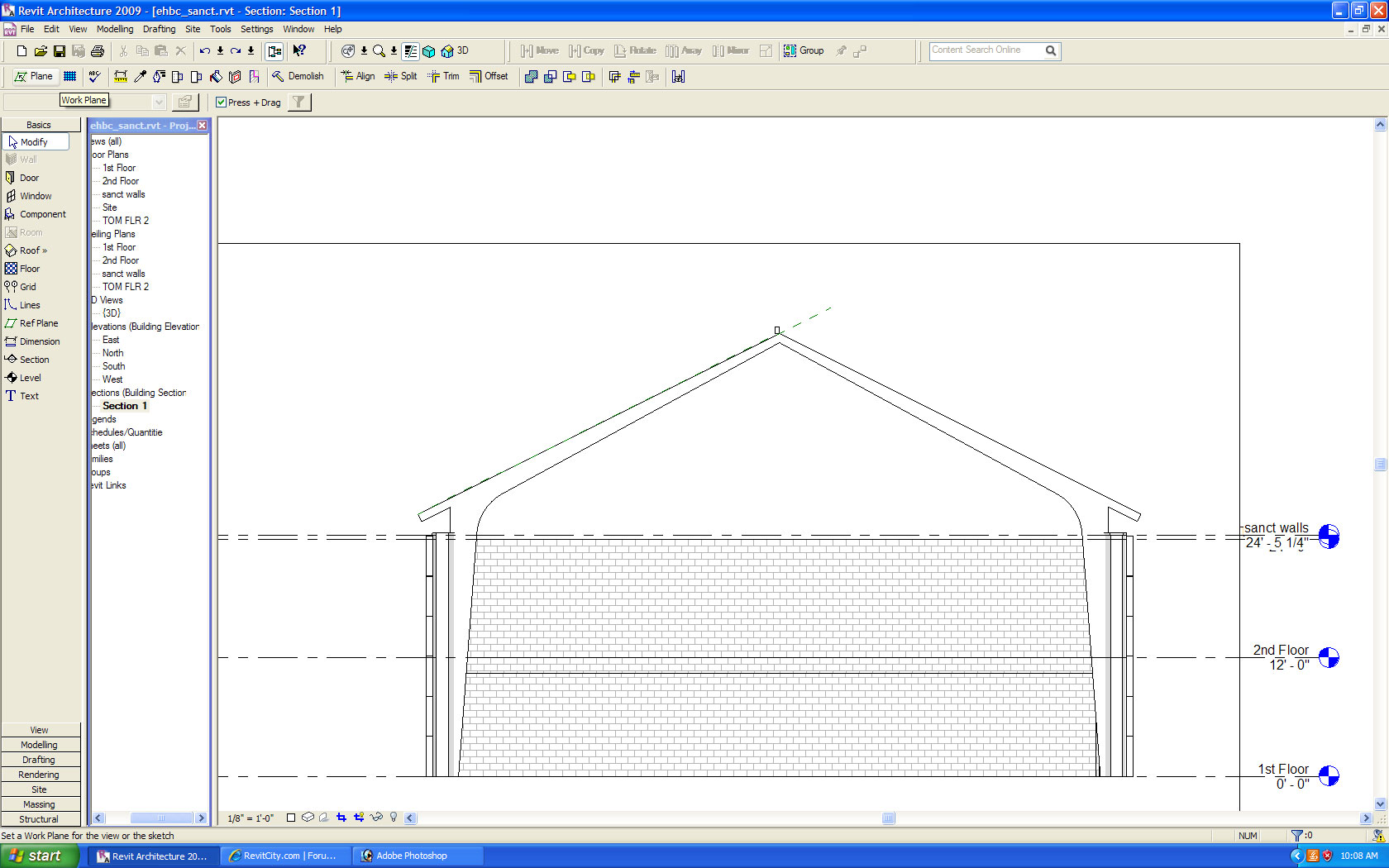 I am working on inputting an existing Sanctuary that was built using wood laminated arches and purlins. I have successfully got the laminated arches in place, but I am trying to place the wood roof purlins on the slope of the laminated beam. I created a reference plane that matches the slope, but when I go to rotate the beam it will not allow me to do this. Does anyone have any suggestions or a better way of doing what I am trying to accomplish? I have attached files to illustate what I talking about.