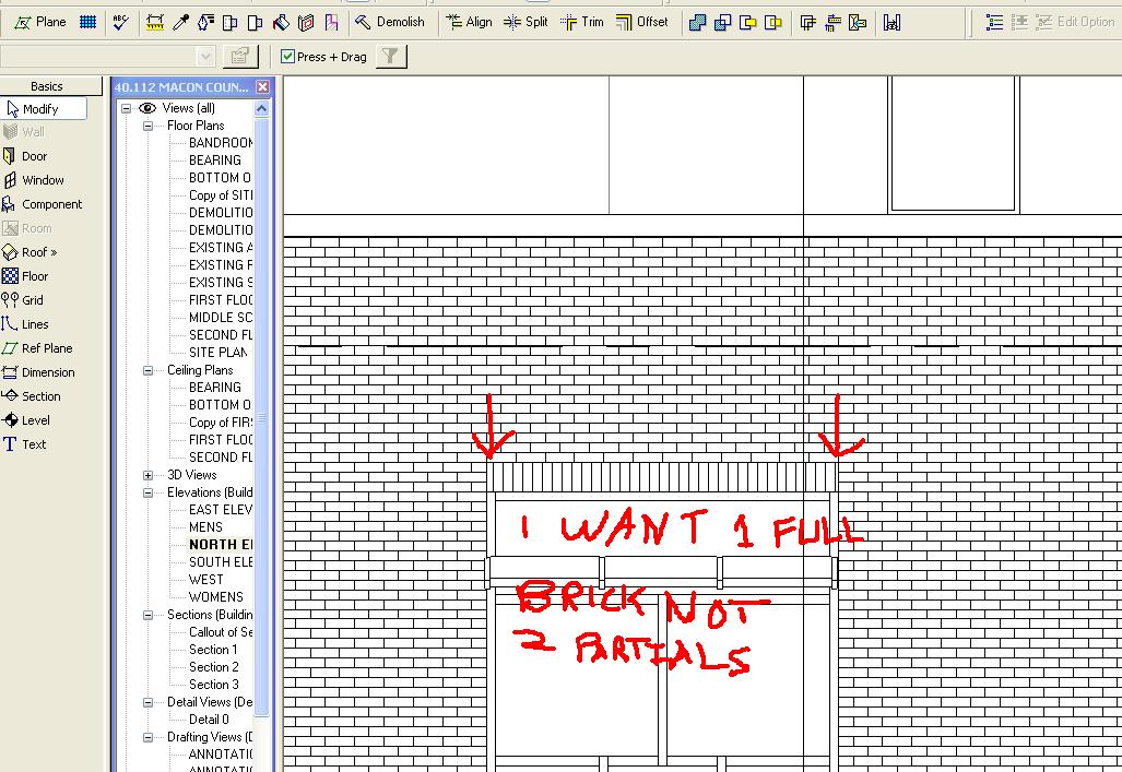 I am having a problem with splitting a face and applying a pattern to it. I cannot adjust the position of the pattern. I want to show a soldier course that has all complete bricks not two that are cut like in the attachment. Is it possible to adjust it like you can do with a dropped ceiling pattern?