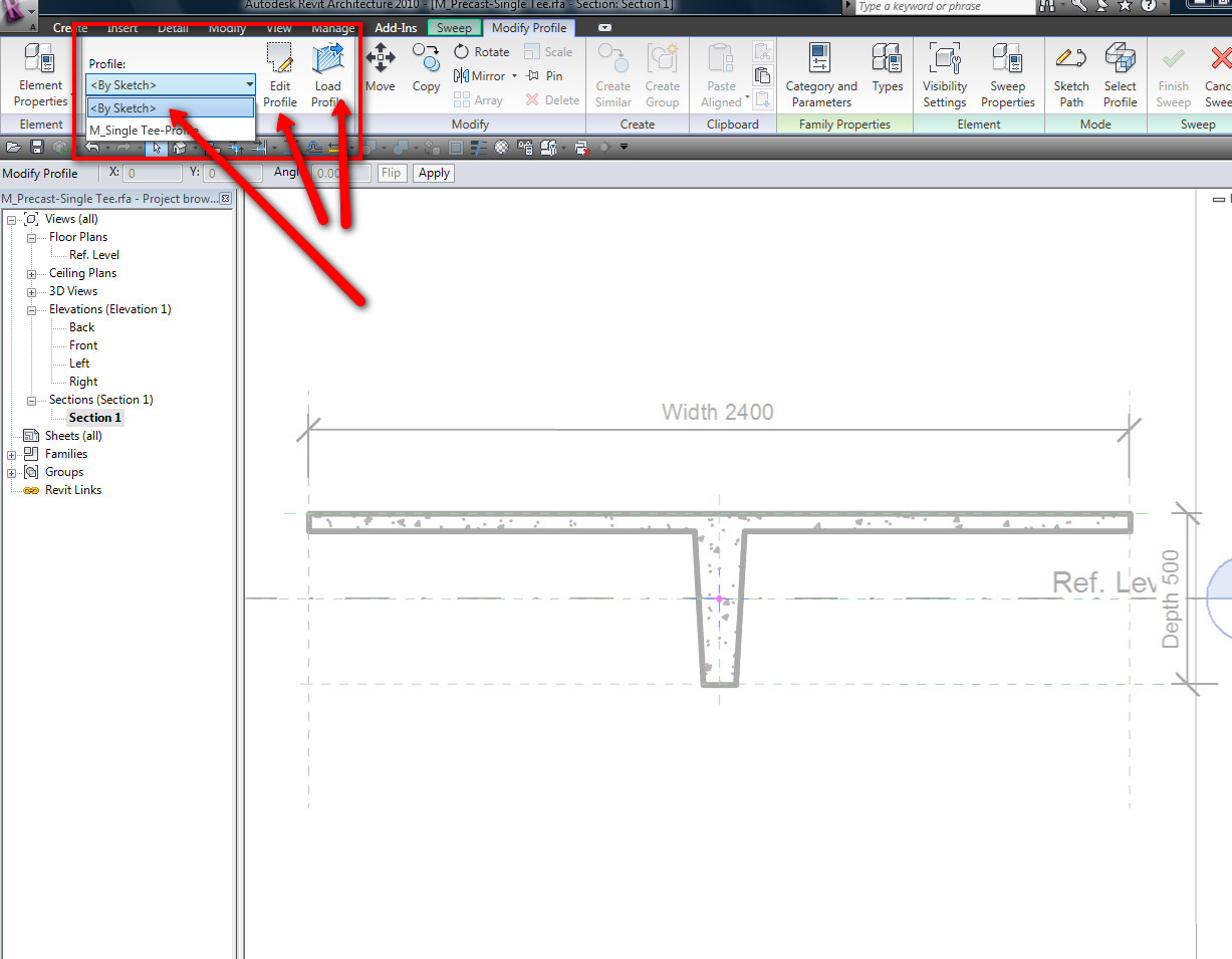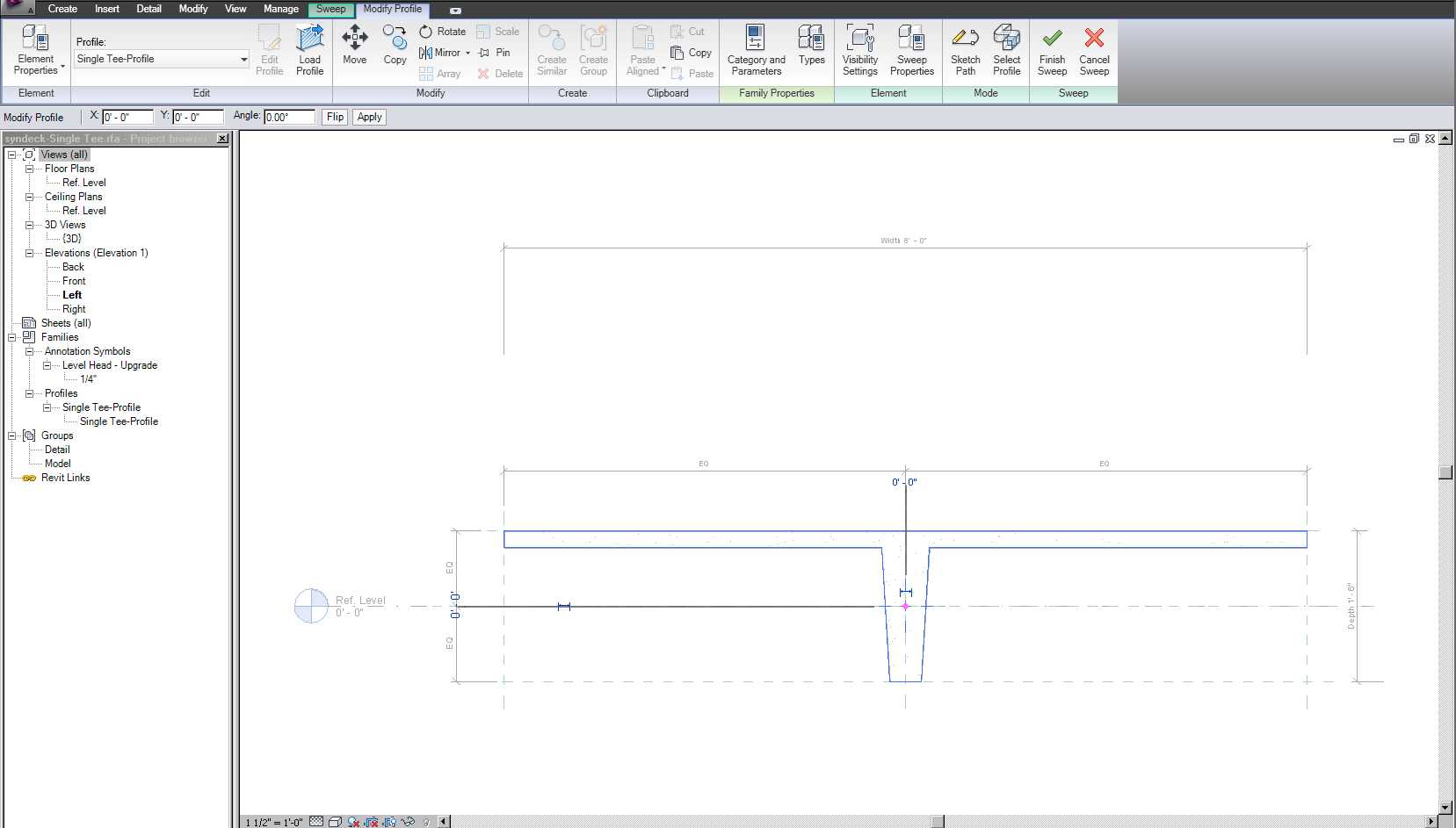 What if the sweep was created in an RFA file? I can't find the same menu options when editing the family. I'm attempting to modify an existing concrete t-beam.