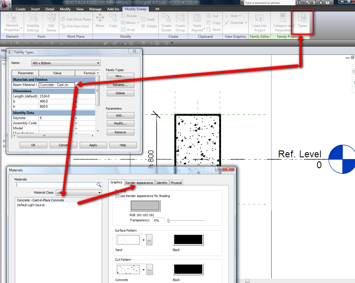I'm attempting to modify an existing concrete t-beam and I can't edit the "patern"