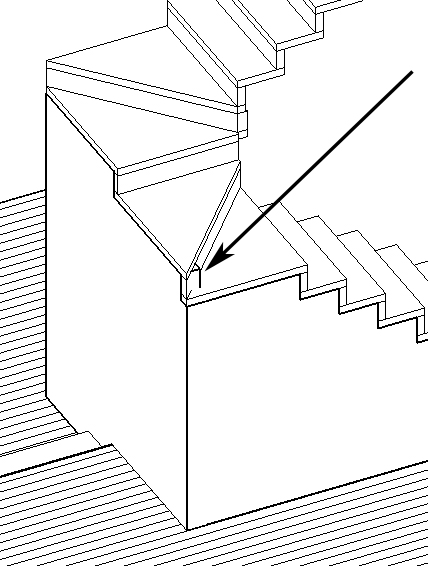 we have an exposed edge winder stair, enclosed from below by a wall. the problem i can't solve is how to create a partial miter at the corner so that the wall from below does not come through the riser of the corner winder. Any thoughts? (i'm a newbie and apologize in advance for the confusing description!)