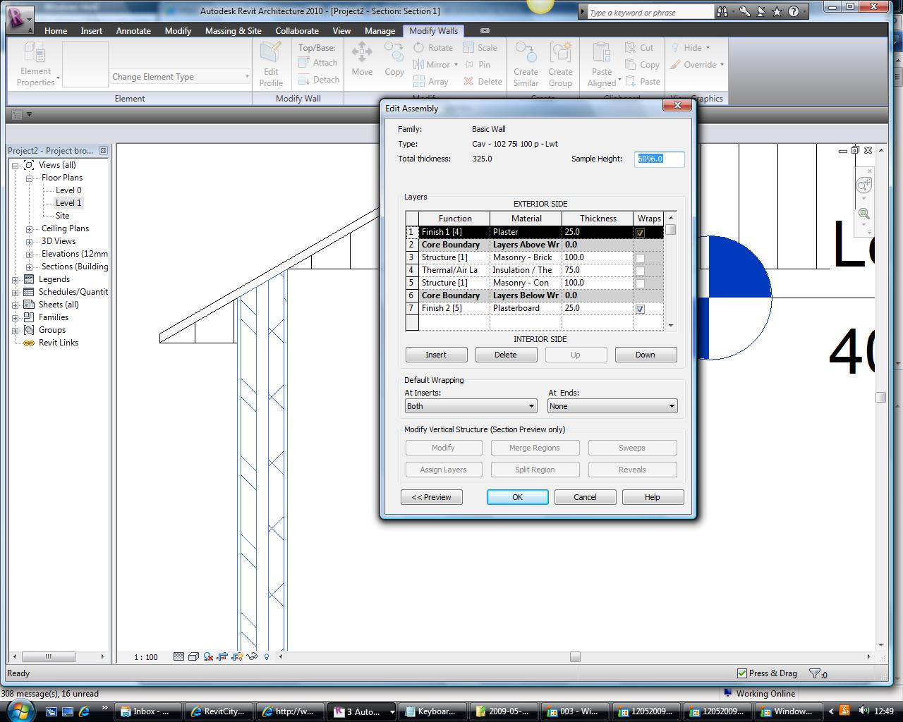 If you draw a section does it look like this, or does the wall extend to the top of the layer?