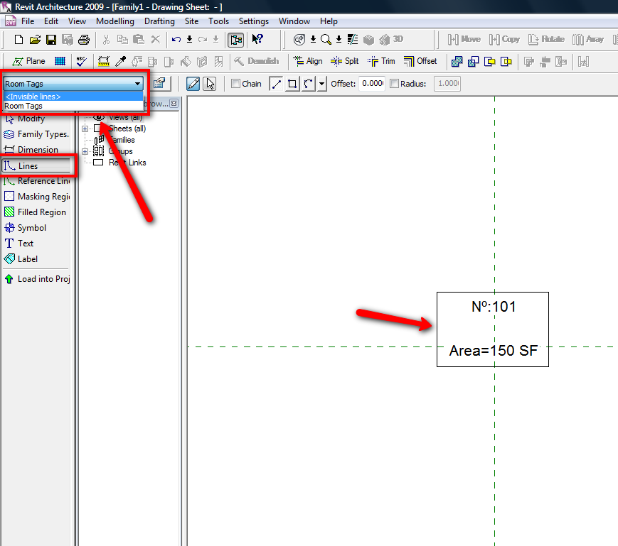 ok it has been a while since i have worked with revit and i am now back in it. What i am trying to do is adjust the box around the room number and when i am in the family rfa I can't draw lines or even see the one the comes in once it is inserted in the rvt file. also when in the family file i get the message that the lines are not visible in sheet view but i can't get them in any view . thanks in advance
