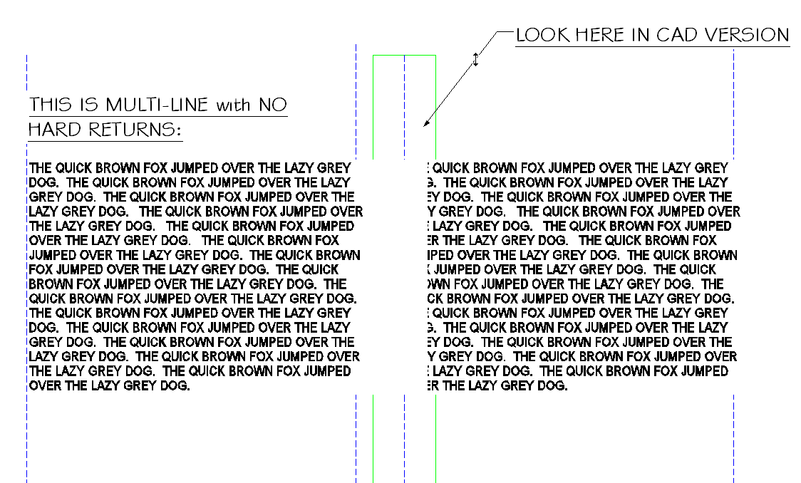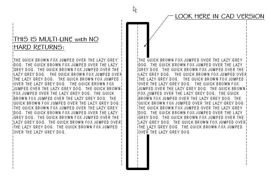 We had not noticed the following problem until 2009. In the past, exports from Revit turned off opaque text in the CAD file. Now in 2009 and 2010, REVIT exports the file according to your text settings... that is opaque text has an opaque masking region behind the text and transparent text doesn't. You would think this is a good thing because it is exporting text according to your settings. But, this change in process has revealed a BAD export problem. REVIT does not export the text correctly as you will see from the attached images. In the Revit file on the left, you can see multi-line text areas that go between the dashed lines. In the dwg export on the right, you can see that the left text now hides part of the text on the right. When checking out the CAD file, I found that hard returns were added to keep the text looking the same but what is worse was the text box limits were expanded and spaces were added to the lines before the returns thus masking the text on the right. BE AWARE !