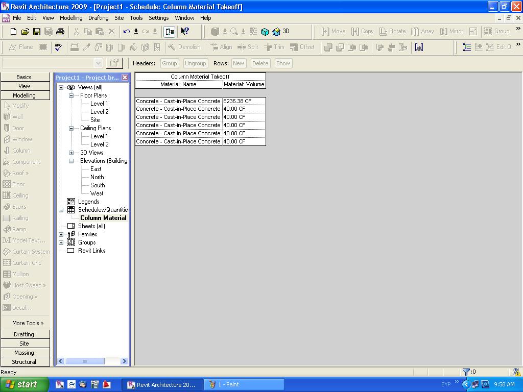 Hello all, I was wondering if anybody knows a way to get volume data from in-place families? I created an in-place concrete column family that was slanted, and since it's to be made of concrete I need to know the volume. I was under the impression that it automatically computed the volume, but when I checked there isn't any. The shape is quite irregular so the usual LxWxH can't apply to it. Any tips for this? I'm using RAC 2009 by the way. Thanks in advance.