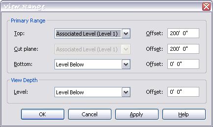 The attached image shows the defaul view range for the site. (View Properties > View Range)