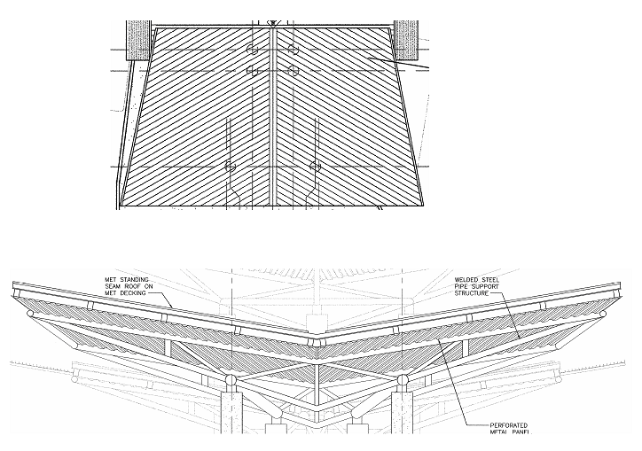See the attached image for reference. plan and elation. not to scale. How would i go about making this type of roof. its pitched, the panels that make up the standing seam metal roofing are angled and the roof is tilted off a horizontal plane. i also would like to be able to determine true length of the standing seam panels.