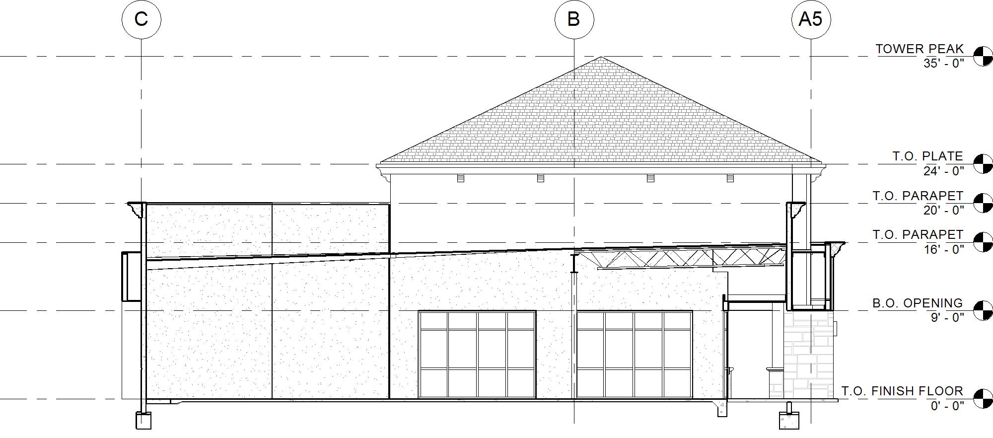 I have a builing that has a rather warped roof. The front of the roof (covering the front of the building) has a constant slope throuout the length of the retail building. Making it easy to insert roof with sloping structural members. However the rear part of the building requires a roof that has a fluxuating ledger line that forces water to flow to concentrated points at the back of the building where we've located drains. See retail2.jpg. This makes for a everchanging slope. I can put in each supporting beam individually to match its given slope, but this is quite time consuming. Any better ways? Also as you can see in the building section, having many beams all at different slope showing up in the background will make for quite a mess of lines, but I still want to show the opposite end of the building. Any way to just show the beam nearest the section line and not the others? Any ideas would be appreciated....