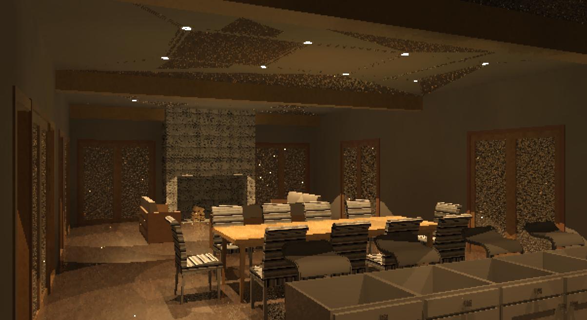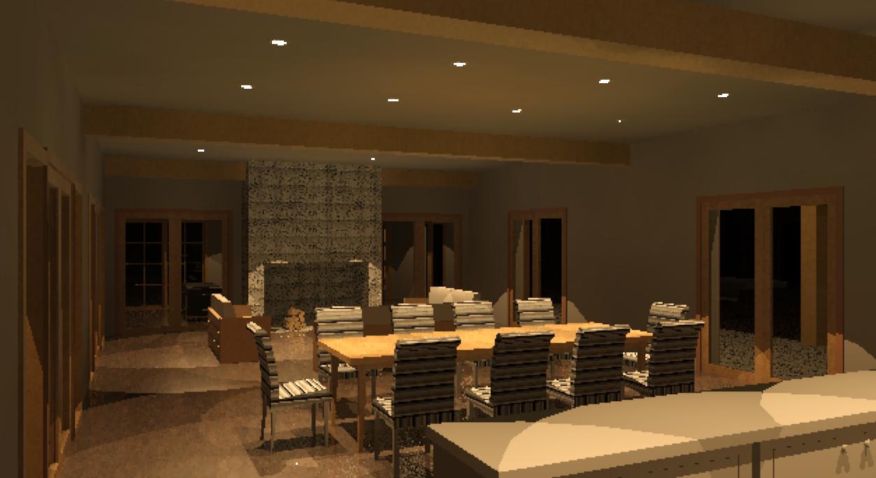 Not quite sure what having "structural floors and ceilings" has to do with it, maybe 2009 gets confused with lights inside structure? Anyway, lunchtrayrider's suggestion to select the joists in the view port just before rendering and "Hide in view" worked out! By Hiding the structural floor, why isn't the gypsum board hidded as well? Wouldn't I be staring at the second floor ceiling? Attached is the final image. Thanks to all.