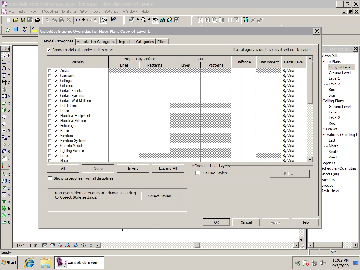 i've always wanted to turn off all the categories in visability graphics and then just turn on the categories i want to see for a duplicated view.. but that button that says "none" does nothing.. see attach..