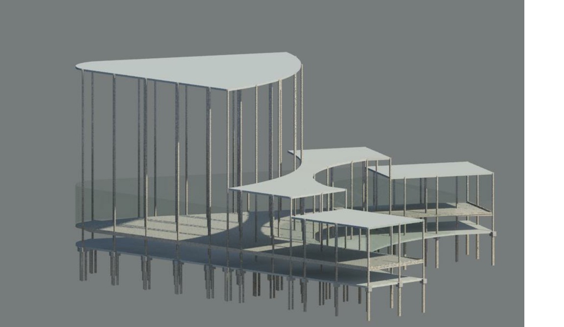 Have been messing around in structure for th emost part heres an update, im becoming concerned as to the exact nature of revit, i think im missing something big and should go through the tutorials, a rep from autodesk is going to send me the 2010 training materials which im looking forward to. Im guessing the purpose of revit is to provide a theoretical model more than anything else, while my discipline isnt structures, they are akey part of the detail we need to include within design, needless to say the model is not structurally accurate. Such a a building poses problems with negotiating the frame layout, lots of curved ASB is there and im not sure as to the practicalities of cutting Corus comflor to curved dimension. Im not an expert on structures but the analysis goes mental with this structure (lots of errors) but if its purpose is a model then i can perhaps leave this... One question should i start from scratch in structure or should i continue to make a messy building, even though the render looks pretty smooth, its just adding the floors makes a mess, something about the loading makes severe depression in areas of the floor, going to try and sort the frame out first, check the technological aspects out with my tutor and then put it in Revit Arch for the finale. Again Ideas and criticism most welcome