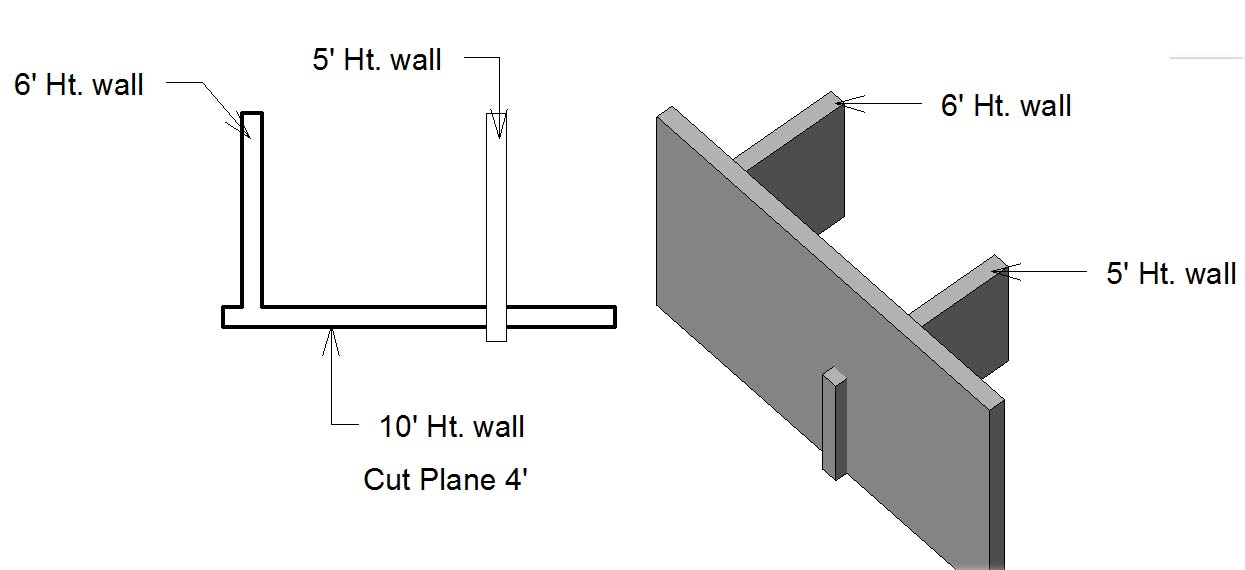 Thanks for your help. Yes I did. It is 4' above. And I also test that in a new file, the same problem occures. There are two problems that I have noticed, firstly if the wall is lower than 6', cut line doesn't show up, secondly, any shorter wall has overlapping display. It is simillar to display order in CAD. Pls see the attachment. thanks