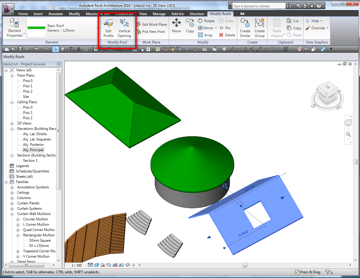 Hey I created a simple roof using the profile, I keep trying to do a vertical opening in it but everytime I click it my ribbon changes to modify and the "edit profile" tab never opens up. Any idea what I may be doing wrong? Its a very simple roof, straight with a slope. Revit 2010 Thank you.