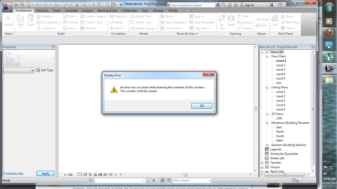 Revit 2014 - An error has occurred while drawing the contents of this window |