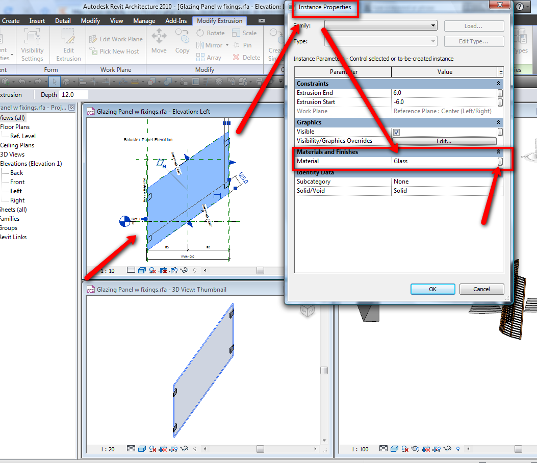 Just wondering if someone could help out here. Ive just started using Revit 2010, still trying to get my head around it. I'm stumped on trying to change the colour of the glass panels in some railings(the ones in Revit metric library). Cant seem be able to edit the panels??? Anyone know how??