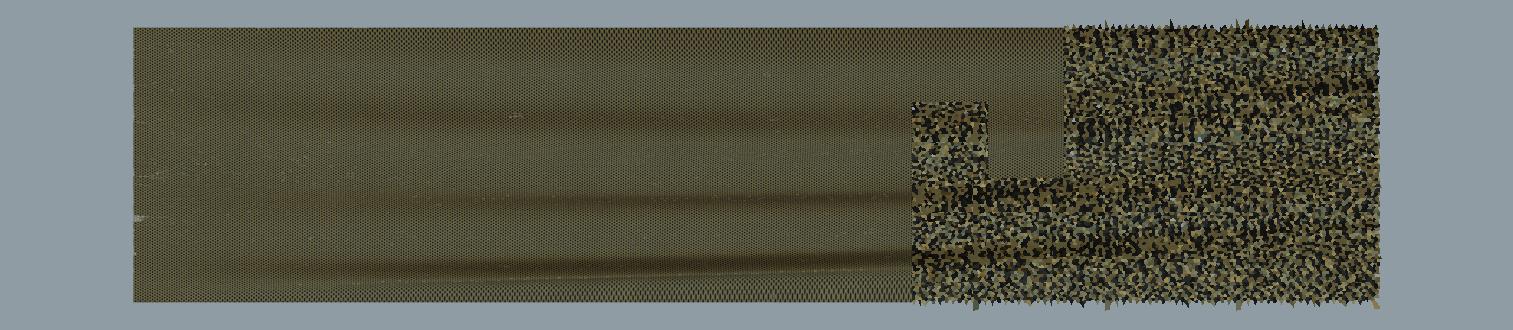 I have attach a newer rendering as well as a section profile of the wall. Also, is there a way to render the mesh with a depth? The mass it is applied to is 1/2 inch thick and I would like the perferations to show that depth.
