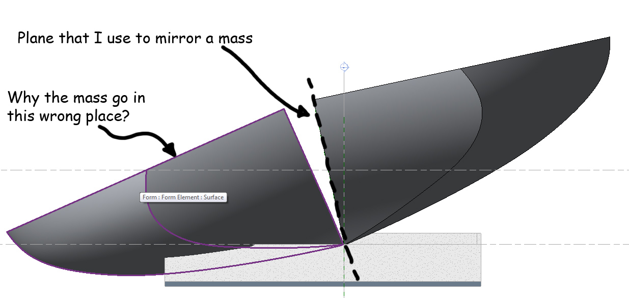 Hi, this is the first time I have ever written here, and I do my compliments to everybody who have done and have been working to this site because it is extraordinary, and I have learnt a lot of think from that. At the moment I have a big problem in working with mass. I have to model a boat, and I have thought that maybe is better if I made and modify only half boat of that and after using mirror I can made the other part (Because I'm going to modify this boat many time to find a right form). Together to the modelling I have to rotate the boat and my problem is here. After the rotation, if I try to mirror the mass using the same plane that was rotated together to the mass, the mass was mirrored in the wrong place (I have put a Photo to explain). What can I do? The way to work is right? Anybody can help me? Thank you, Bye Guido