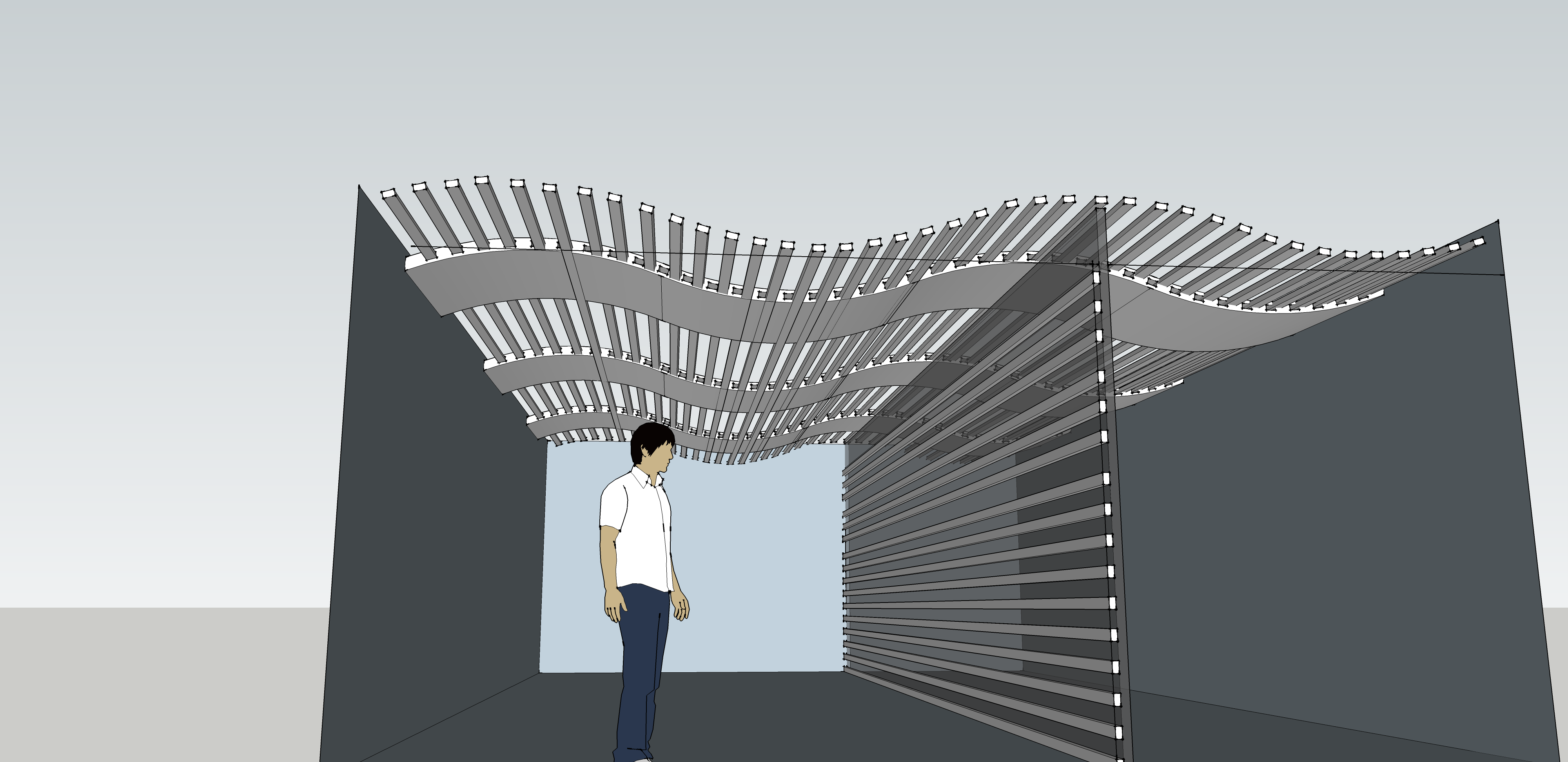 also thx WWHub - i think this will be easier way of handling the outer slats layer. I'm attempting a similar thing with the ceiling next... I've enclosed a rough sketchup image. I havent truly looked into this yet, but any advice on how to get started with this one? (sry to add into same thread). KEv
