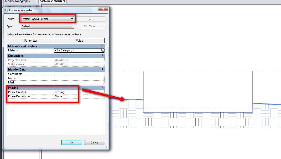 I also tried creating a new project and adding a toposurface and building pad, however in this case, the building pad correctly cut through the toposurface. I've checked my phase settings, and everything is set to "existing".
