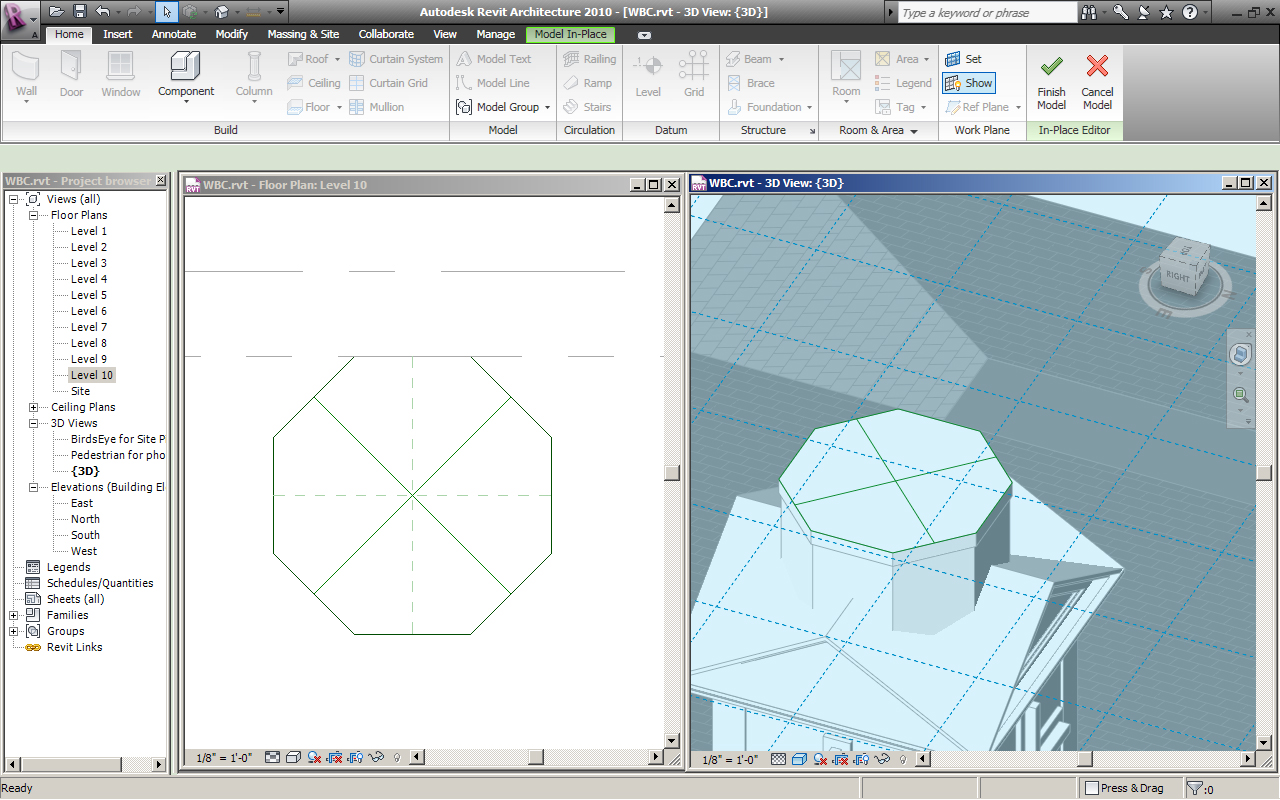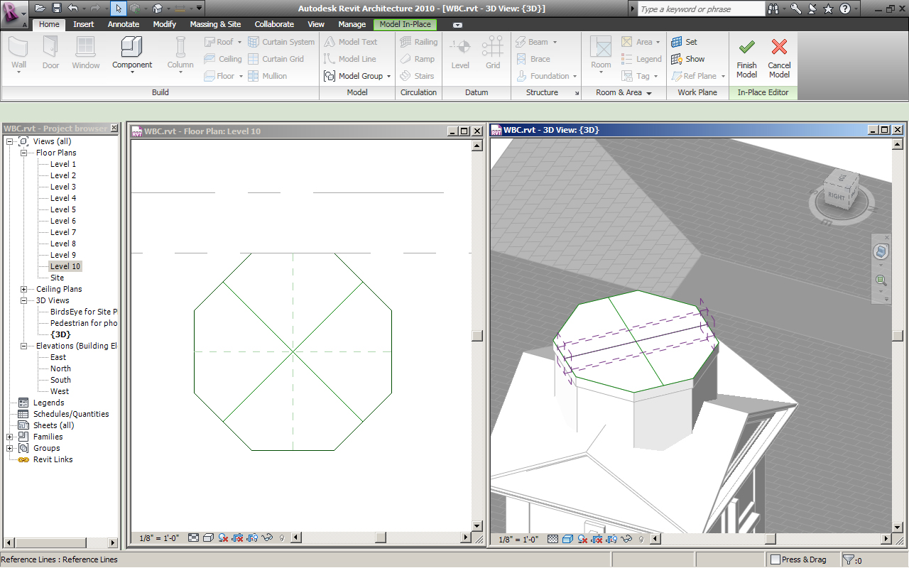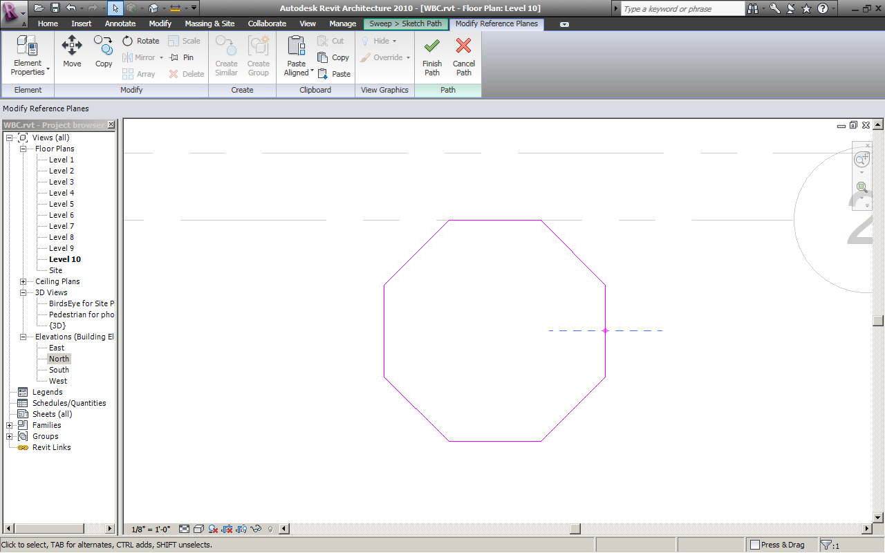 Typhoon, This is by far the best help I've ever received on this website! Thank you so much for taking the time to do that for me. I am having a problem with it though. When I go to set my workplane, I select one of the crossing reference lines you said to draw, then it asks me to select a view, and 3D view is not in the list. I select the level I am drawing on, and then when I click Show, the plane is horizontal, not vertical like yours. Is this a problem?