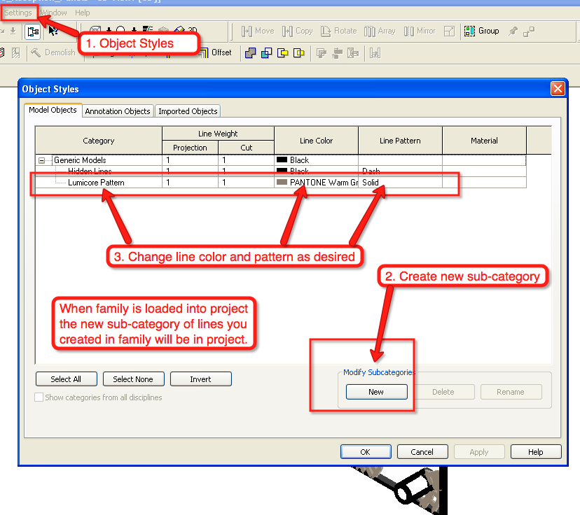 Forums >> Revit Structure >> Technical Support >> Family Creator - Editing Model Line Color