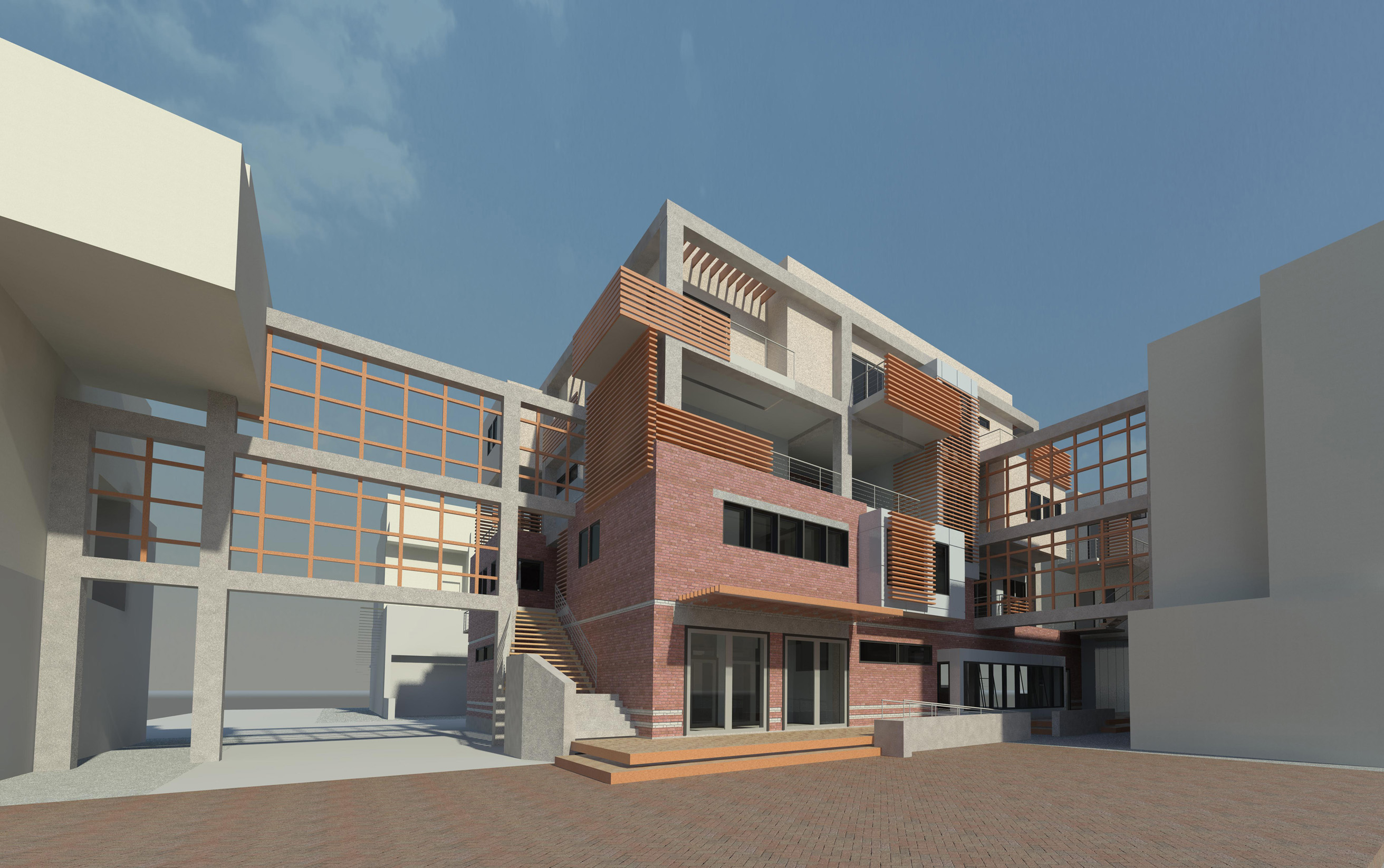 plaza perspective of building, spliced region render put together in photoshop. i would welcome any comments, tips, or questions!!