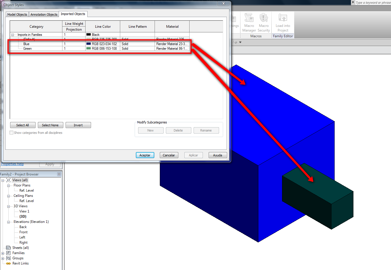Yes by doing what you said But could I ask another question? I try to assign a color to a sketchup imported object And I found this thread that discusses the same problem http://www.revitcity.com/forums.php?action=viewthread&thread_id=13802&start=0 I added new render materials in "both materials" and "object styles" windows to the object but it remains gray when rendered.