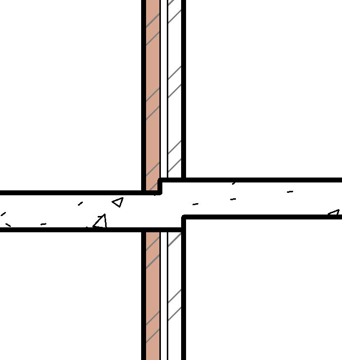 The structural slab should not extend to the outside edge of the wall. The slab should extend to the inside of the outside brick or to put it another way to the outermost edge of the cavity inorder to transfer reinforcing etc. Attached is sketch of how I would do it. When you create the floor or edit it the sketching sequence when finishing will ask whether you would like to join the wall and floor and also whether you would like to cut the wall with the floor the answer to that question is yes.