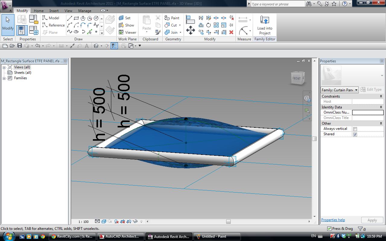 Hi Typhoon I followed Zach's method of creating panels with curvature from this post and made my version of ETFE panels (not perfect. but something good enough as a start for me) http://buildz.blogspot.com/2009/12/conceptual-modeling-tips-with-joe-k.html The panel was made as a generic model then host into a pattern-based curtain panel as Zach did for his project. But now I come into the problem of panels not adjusting its size accordingly to suit the divided-surface of a conceptual mass. Do you think I have missed out some steps on the way? Thanks.