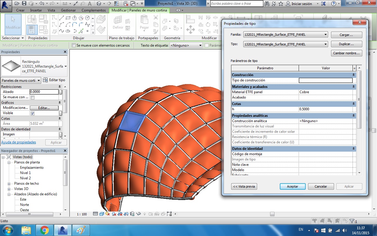 To change material and height of the etfe cushion select one panel and enter EDIT TYPE option (pic 2).