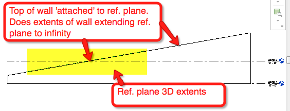 " That's not quite true. Refplanes have 3D extents just like grids. If your refplanes don't go through the view range, they don't show up. Go to a section or elevation that cuts through the refplane, and you can adjust the extents. Make sure you drag the 3D extents, not the 2D. Tom, maybe you're thinking of work planes? " I still stand by my assertion. Maybe I didn't explain it enough, but while reference planes have a 3D extents, logically they really do go to infinity. The green dashed line that represents a reference plane can have a 3D or 2D extents like a grid element, but that really only adjusts the display or physical manifistation of the reference plane in the view. If you base a workplane on a named reference plane your workplane will not be restricted to the 3D extents of the reference plane. If you attach the top of a wall for example that is longer than the 3d extents of a reference plane, Revit will attach the wall top extending the reference plane to infinity logically for the attachment. Granted this is a fine fine distinction of reference planes by advanced users, but the newbies might benefit by knowing the distinction of logical vs. physical display of reference planes in a project.