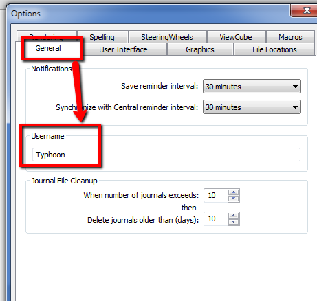 Options > General > username